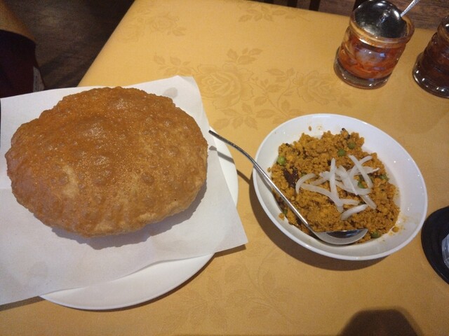 チャパティを揚げたもので、インドに行った時はよく見かけ、とても美味しかったのですが、日本では提供店が意外と少ない。