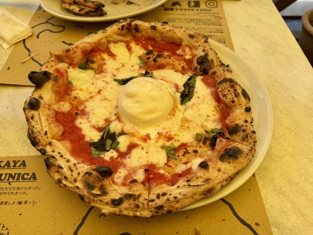 週末のランチを鮫洲駅周辺で検索したところ、圧倒的に1位だったので伺ってみました。テラスには待ちが2組。仮設屋根の下で待てるのがありがたい。究極のマルゲリータとカプリチョーザピザを2人でシェアすることに。まずはランチメニューのサラダ。パイナップルドレッシングの甘い匂いが期待を高めます。次にカプリチョーザピザ。思ったよりも大きい!具もたっぷり!1.5人前くらいのボリューム。ピザ生地が薄くて、具沢山でも意外とペロリと食べられます。そして、究極のマルゲリータ。プッラータにナイフを入れる瞬間がドキドキ。トロッと広がるかと思ったらちょっと違った。とても美味しかったです!