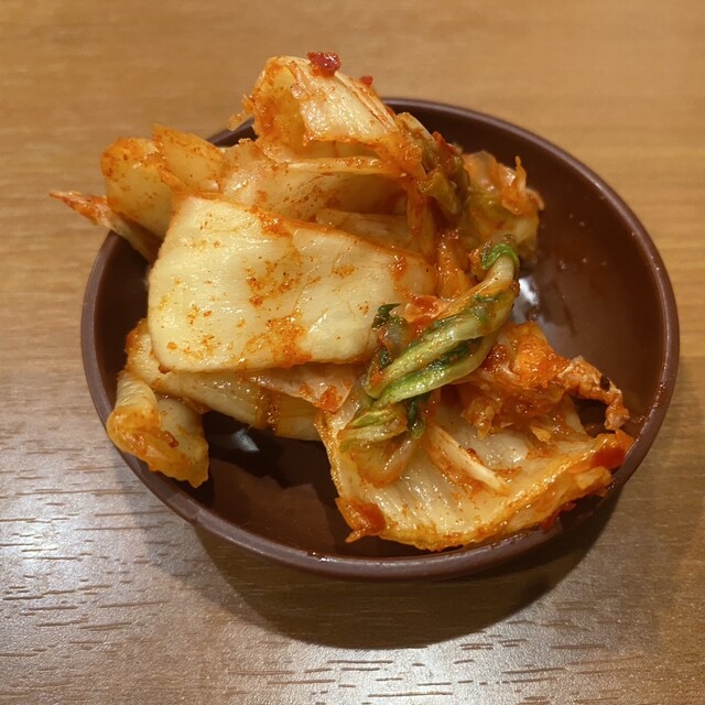 食べ放題のキムチは、あれ?こんな味だったっけ?と思ったけど、塩味薄めであっさりしててあんまり辛くもないからパクパク食べちゃった〜