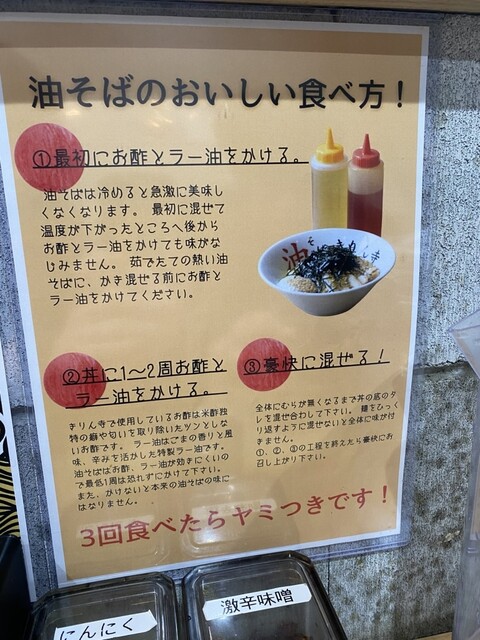 油そばは普通のラーメンに比べてカロリーも塩分も低いと書いてあったけど、信じられないほど満足感がありました。