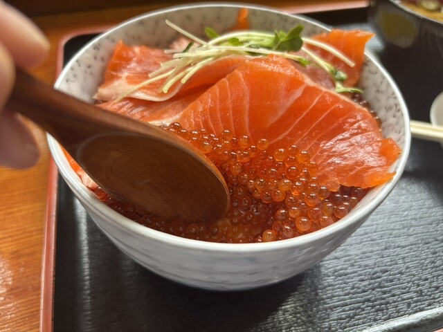 マスの卵はいくらより小粒で、口の中いっぱいに広がる旨みがあります。味付けは濃すぎず、卵本来の旨みを感じる絶妙な塩梅。そして、かなりの量です。まさに幸福感の塊!