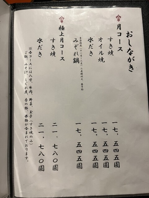 今回はご厚意に甘えて、極上月コースのすき焼きを注文。