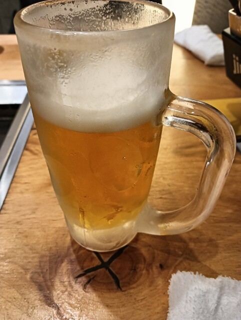いつものように生ビールで乾杯。これがまた冷え冷えで最高。ユッケと同時にセンマイ刺しを頼むのももはや定番になりました。