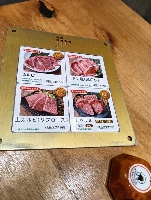 年納めですのでジン盛り合わせ(6160円?)を注文。極タン、はらみ、ロース、カルビがつまっております。