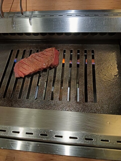 単にはネギ皿とカットレモン、ロースには生卵、ハラミにはおろしポン酢を注文しまして準備万端です。