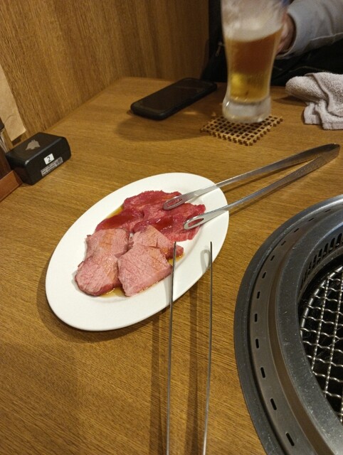 まずタンが厚切り(しかもかなりおいしい)、ザブトンの肉寿司、すき焼きロースに最後どどんと肉盛り!イチボ、ランプ、カルビ、はらみ、も一つど忘れしましたがそれをサンチュとご飯でお好きにどうぞといった全部のせコースだったのです。最高過ぎて毎月行く焼肉に次ぐ2位の美味しさだと太鼓判です。接客もとても良く網も気づいたら変えてくれてました(*^^*)お腹いっぱいいただきました。大満足です!