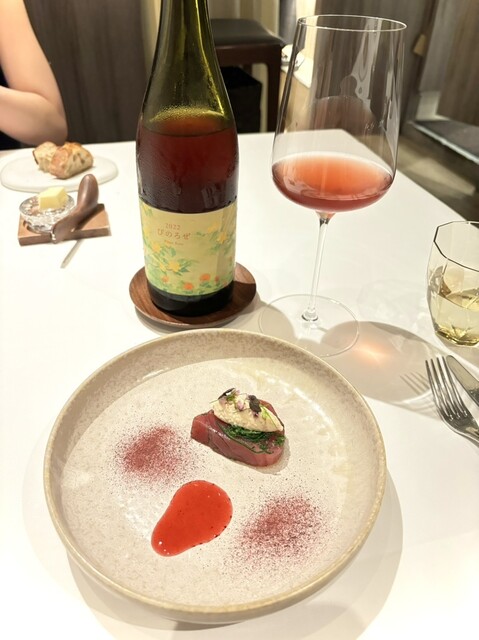ペアリングは北海道のピノ・ノワールで、いちごやラズベリーのような香りで軽やかで、このお料理のためのワインというような印象でした