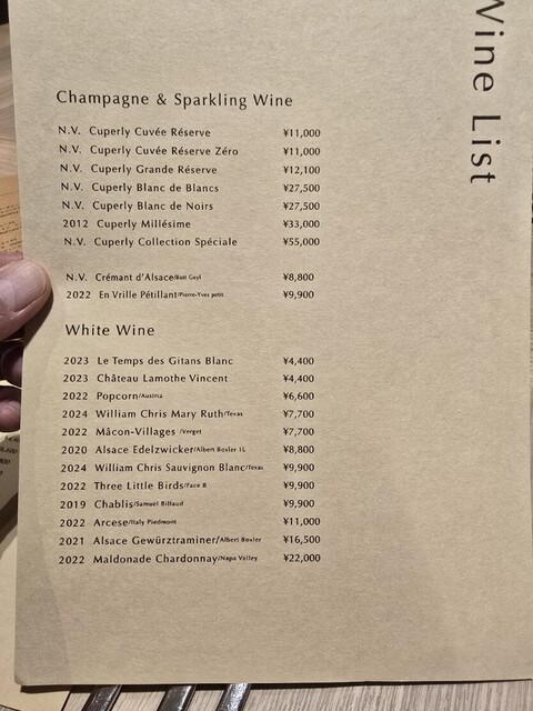 ペアリングワインが3杯で4000円。