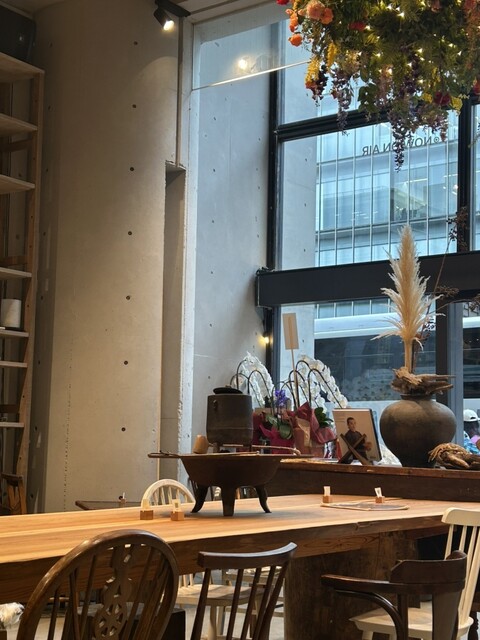 青山一丁目の駅から1分なのに凄く自然を感じるお店です。とても食材の力が引き出されていて優しい味付けで満腹になりました。プレートには食前お酢ドリンクも添えられてたり気持ちを切り替え癒されるお膳になっていました。お席のテーブルや椅子も其々個性豊かで、作者の愛を感じるそんな家具に触れられるのも楽しいです。2階はレンタルスペース&ギャラリーになっていて、今回は染色家の方のワークショップとベビーヨガ?のお教室が催されていました。まだ利用したいです。