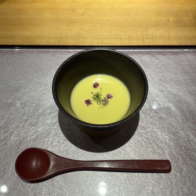最初に出てきたのが、サワガニの甘露煮やらっきょうのワイン漬け、もずく、味噌漬けのチーズ…っていう、ちょっとずついろんな味が楽しめる前菜たち。この時点で「ここ絶対おいしいやつだ」って確信。アワビと水蛸の土佐酢ジュレ漬けとか、とうもろこしの冷製茶碗蒸しとか、ひとひねりある料理が出てくるのも楽しくて、ずっとワクワクしてました。
