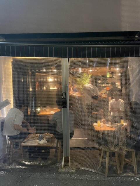 来る人来る人、無理ですごめんなさいで追い返されてました。梅田駅からまあまあ離れてるのにこの人気は??確かに外観もおしゃれだし気になるのも分かります。カウンターが何席かあり、テーブル席が3席あります。