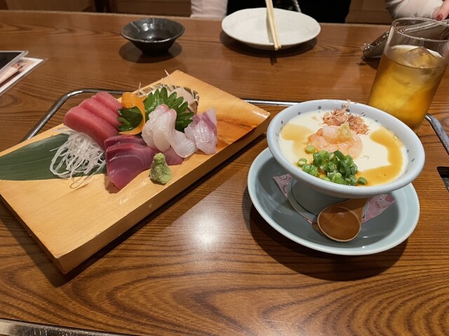 お刺身、マグロの春巻き、きゅうびのお豆腐など
