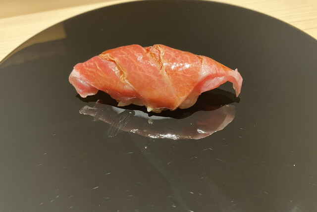 新イカ以外だと、炙りしゃぶしゃぶのように調理されたクエ、薄切りを2枚重ねたトロ(軽やかでよい)、大変美しい発色のくるまえび(食感もややレアめで好き)あたりが好みでした。