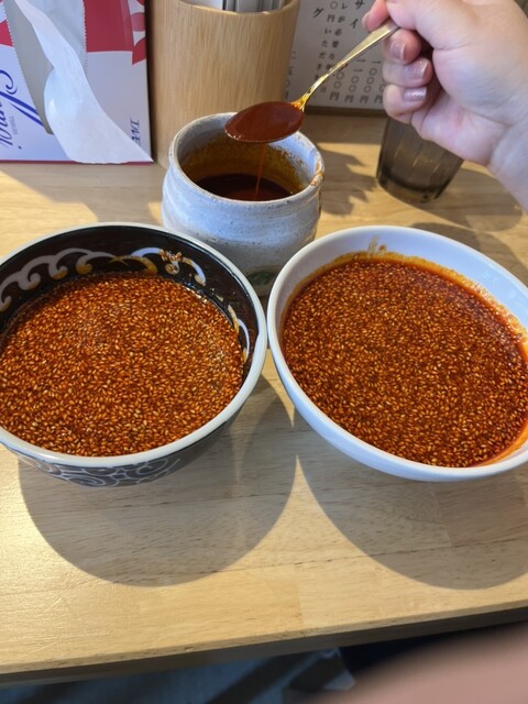 辛さは選べますし、卓上に辛味油が置いてあります。