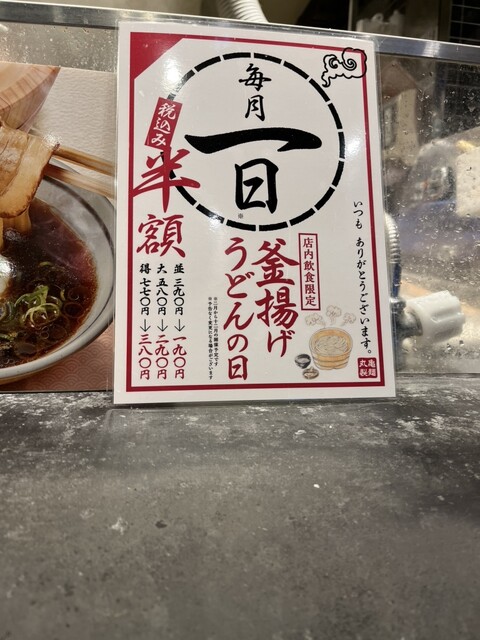 釜揚げうどんが半額の日で並サイズ(190円)とかき揚げにしました。初めて釜揚げうどんを食べましたが、出汁のつゆがしっかりした味なのに辛くなくて甘味があって美味しかったです。かき揚げは揚げたてでした。
