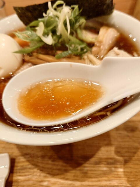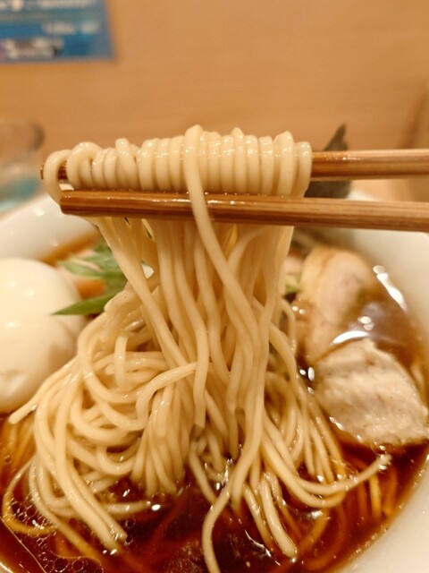 輝く様に美しく澄んだ青湯醤油スープは今回も健在、安易に甘くせずしっかりとした塩味と鶏・魚介の優しい旨味が、レンゲから啜る度に口いっぱいに広がります。