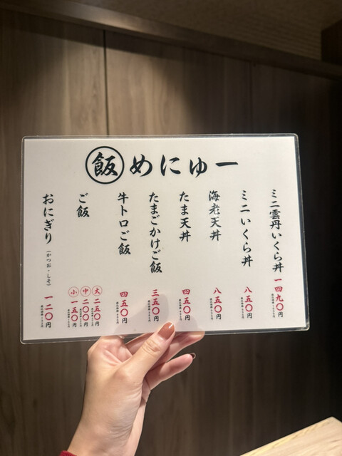 → 山ワサビがたっぷりのったローストビーフ。しっとり柔らかいお肉に、ツンと抜けるワサビの爽快感がクセになります。玉子入りのタレにつけて食べるとまろやかさが加わってさらに美味。
