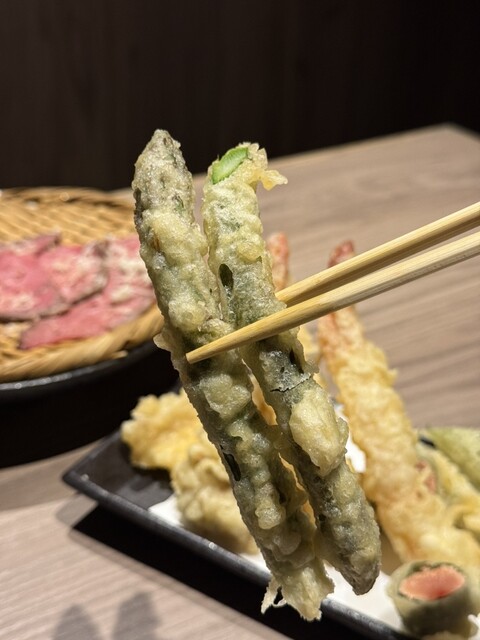 → 個人的にはアスパラ豚巻きと大海老が特に好み。衣の軽さと素材の旨さがしっかり感じられます。