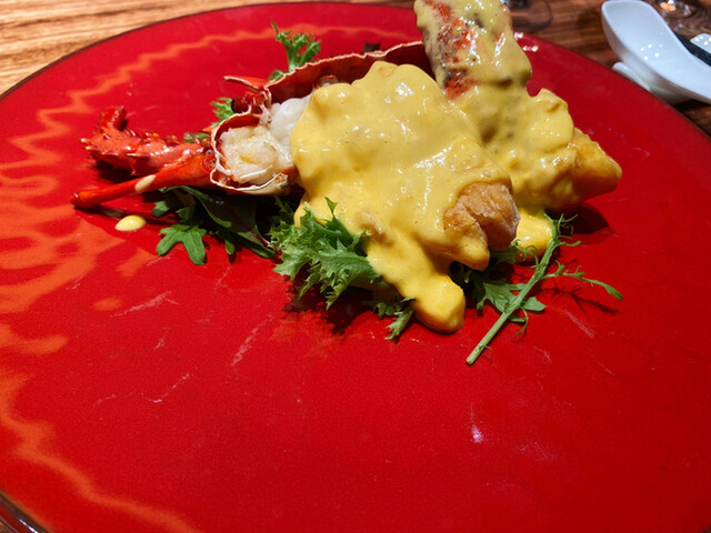 ぷりっぷりの伊勢海老とネギ生姜と醤油のソースが絶妙に絡み合っておりました。