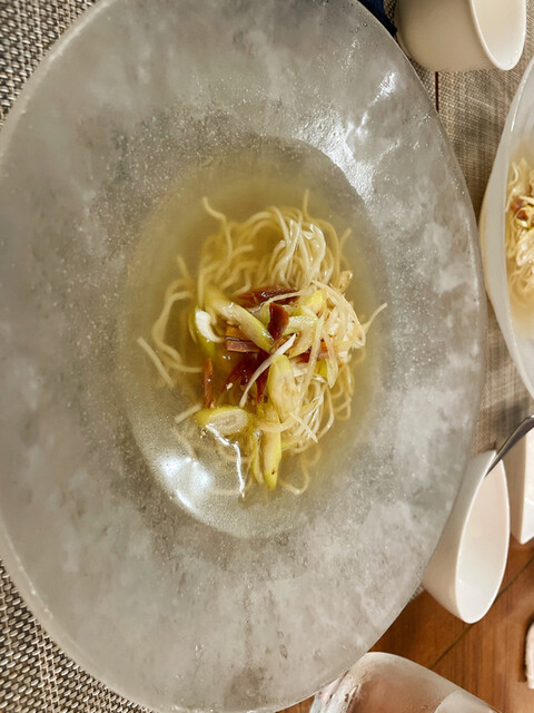 からの、この前食べた冷たい麺は絶対食べたいと事前オーダーしていたので登場。(ネギ少なめ)
