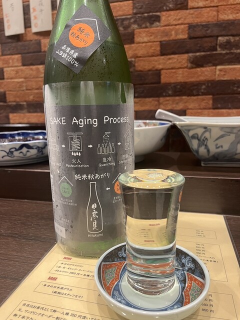 途中日本酒チェンジで宮城の日高見純米秋あがりをグラスで一杯。口当たりはスッキリですが寝かせて増幅された旨みが後から広がってくる美味しい純米酒でした。