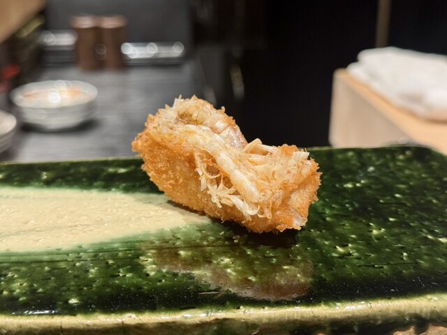天草の車海老 → 脚までサックサクに揚がっており、香ばしさと海老本来の甘みが一気に広がる。噛むほどに旨みがあふれ、印象に残る一本。