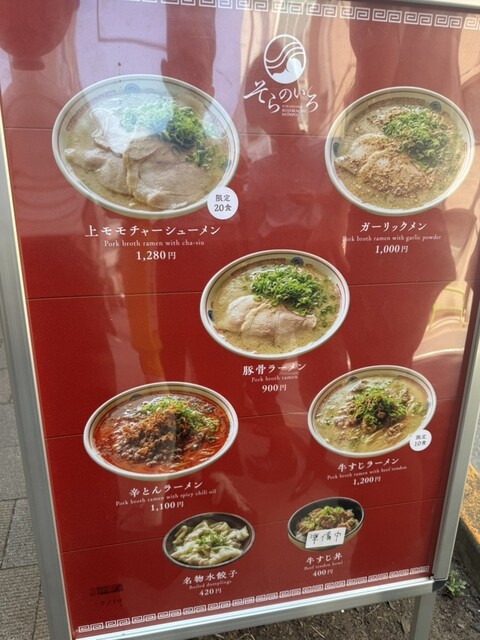 メニューには定番のとんこつラーメンをはじめ、限定20食の「上モモチャーシューメン」や限定10食の「牛すじラーメン」、さらには「辛とんラーメン」「ガーリックメン」と個性豊かなラインナップが揃っている。