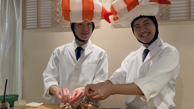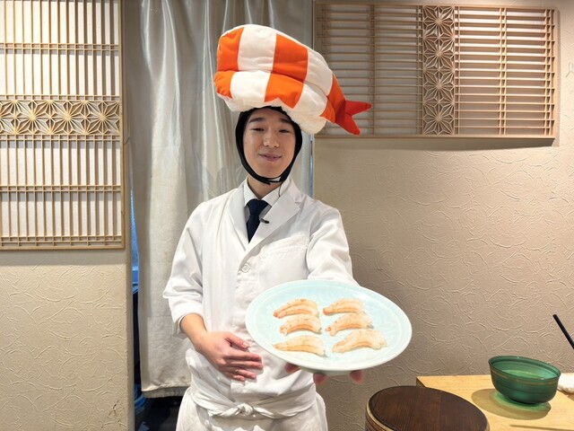 北海道の甘海老は目の前で向くパフォーマンスが楽しい。