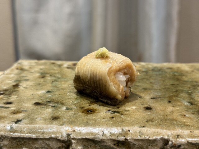 昆布の旨みと雲丹の甘みが重なり、非常に記憶に残る一貫。