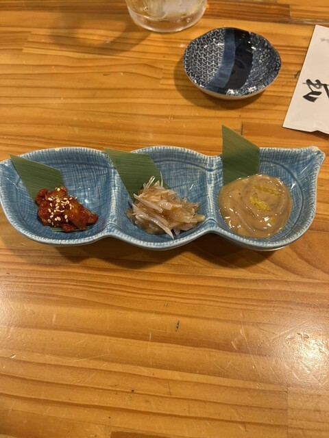珍味3種(チャンジャ、梅水晶、塩辛)