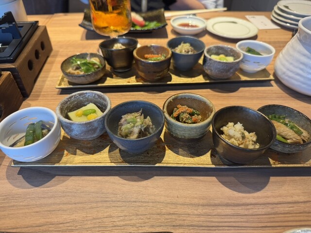 旬な食材を使用した前菜から始まり、バーニャカウダ、舌触りから新鮮さが分かるお刺身、定番のスパイスがよく効いている手羽先、炭火で仕上げた和牛、〆の鰻料理など、大満足な内容でした。