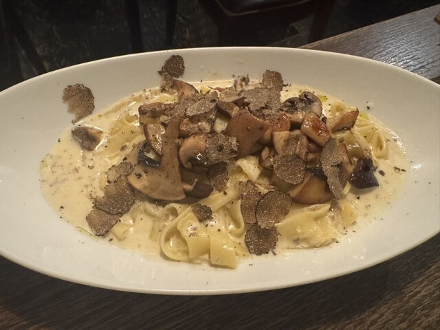 黒トリュフとキノコのクリームソース"タリアテッレが提供される際は、目の前で黒トリュフを削る演出があったりと、味だけでなく目でも思い存分楽しむことができましたよ。