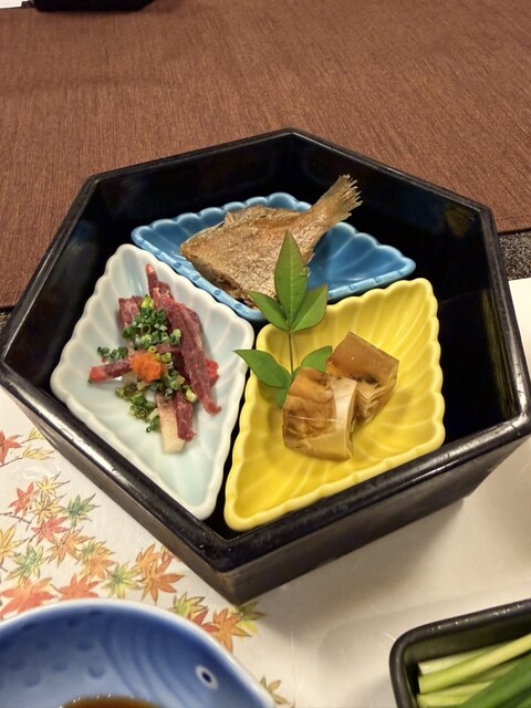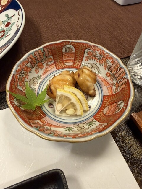 フグは下のお皿の模様が透けて見えるほど繊細な薄さでしたが、弾力がありとても美味しかったです。
