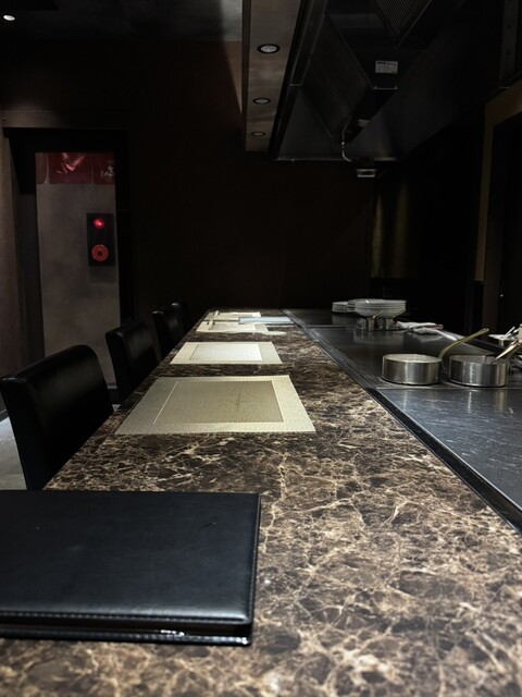 大きな鉄板を囲んだカウンター席で上質な雰囲気