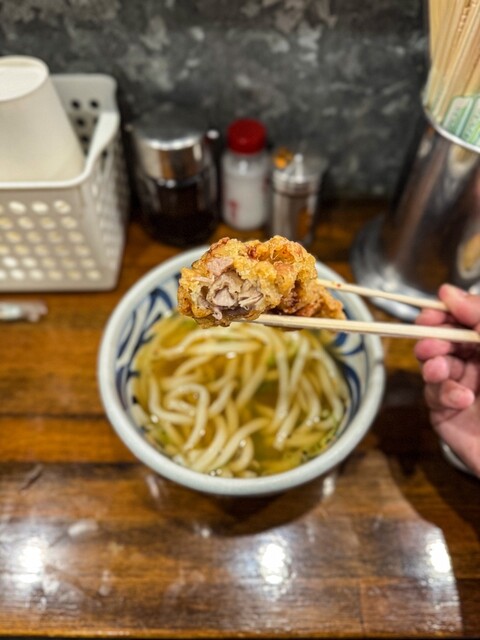 鶏天なんて、もう“うどんに乗せるサイズ”じゃない。ほぼ唐揚げ。