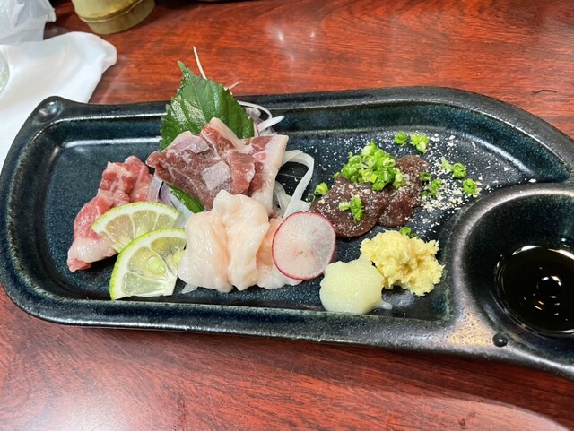 まず馬刺し盛り合わせ びっくりするくらい新鮮ですっごい美味しい!!!