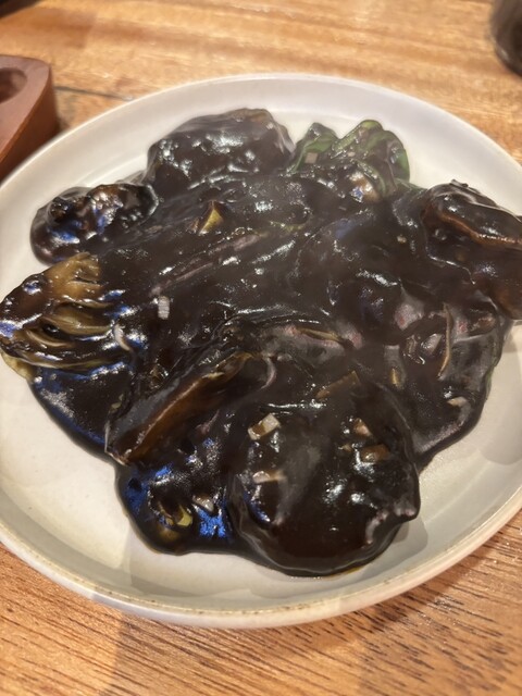 前にトライした時は満席で入れず平日開店直後に行ってみたら入れました。看板がない&3階&ドアに小さいシールだけなので最初連れが見に行って「やってないと思う」と言っていたけど信用できないから行ってみたらやっていたし入れた!あえて見つけづらくされているから気難しいお店かと思っていたけどスタッフさん明るくて可愛いし気さく。料理の種類は多くないけどポーション小さめで色々楽しめるのも良かった。おすすめのひと皿前菜の北京ダック風やクリチの紹興酒漬け、黒いエビチリ、青椒肉絲ステーキとお酒に合う重すぎないフレンチ中華。ドリンクはスパークリングのハーフボトルあるのもいいしドラゴンハイボール美味しい。今度は予約して行ってみまーす