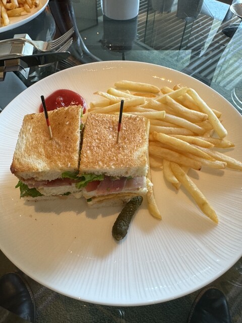 土曜昼に訪問。カフェは待ちが一組だったのでレストランではなくカフェを選択。QRコードで簡単にラインやメール呼び出し対応可能。さぞかし高いのかと思いきやそれ程ではなく、2人で利用だったので、クラブサンドイッチセットとケーキセットをオーダーしたら全て2人分を分けて持ってきてくれました。クラブサンドイッチも美味。アメリカのそれよりはかなり上品ですが、卵やチキン、野菜などがぎっしり、ソースも美味しく満足度は非常に高い。ケーキはイチオシのマロンケーキ。丁寧なクリームと上品な甘さのマロン。残念だったのはアイスコーヒー。コーヒーは美味しいが、氷がとても多くすぐに水っぽくなってしまいました。