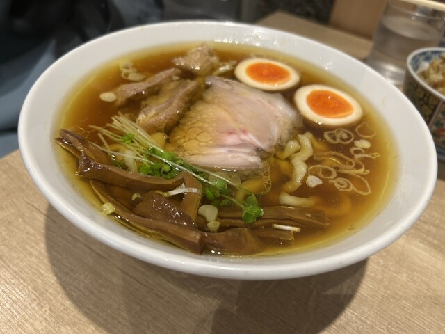 あったかい親鳥中華そばのスープとは、違ってあっさり気味かな。あと唐辛子の辛い調味料を入れたらピリ辛になり、よりさっぱりといただけて美味。