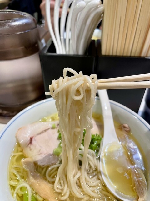 麺は、中細のストレートでしっかり茹でられていて、しなやかで伸びもあってスープにめっちゃ絡む!