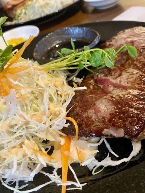 サーロインステーキと、本日の特価(ハンバーグ赤ワイン煮込み)を注文。サーロインステーキの柔らかさと塩加減が神がかっていました。今まで食べたサーロインステーキのNo. 1です。そして、安すぎる!サーロイン180gで1300円って!しかもサラダも味噌汁も漬物も付いてる!ランチドリンクも100円追加で並々のコーヒーがw月1以上で通いたいと思います。夜も行ってみたいなぁー。