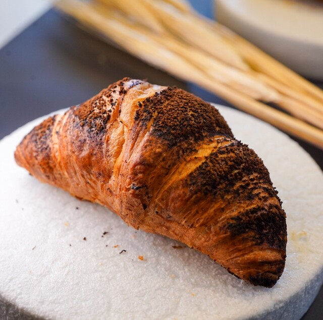 →六条麦のクロワッサン。焼きたてでずっと香りを楽しんでいたくなる!
