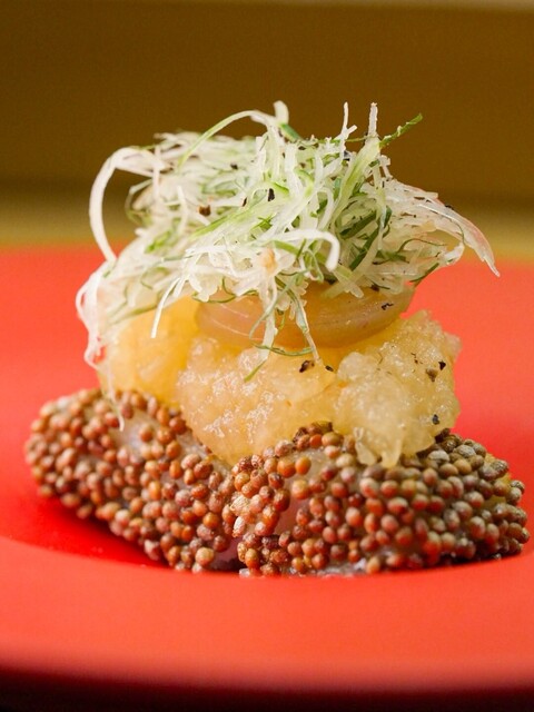 なめらかなボタンエビが映えます。いきなりの味の掛け合わせに感動からスタートです。まるで豚肉のような深い旨みすら感じられます。