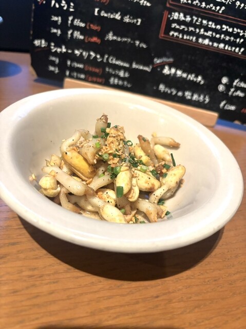 なんと ピーナッツのガーリックソテー派歯応えとバターガーリックの香りが最高にマッチ