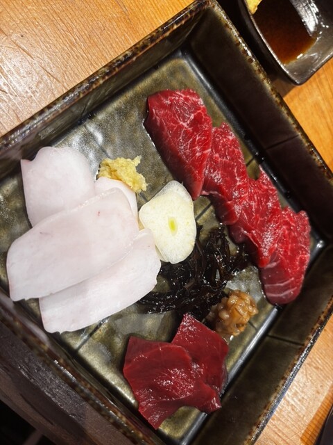 ヒレ・タテガミ・ハツの馬刺し三点盛り