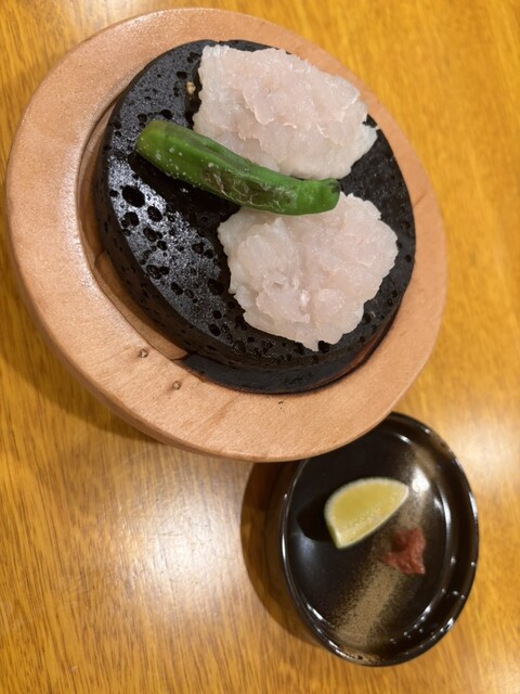 ふっくらと焼き上げた鱧を、熱々の溶岩石で香ばしく仕上げ。こちらも目の前のパフォーマンスが素晴らしい
