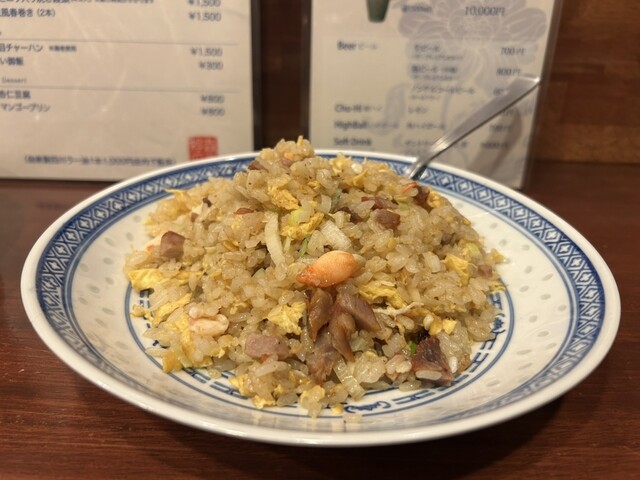 五目チャーハンは、えびとチャーシューたっぷりでシンプルな味付けのチャーハンですがめちゃくちゃ美味しい!ちょうど良いパラパラ具合と濃すぎない味付けで絶妙なバランスでした!麻婆豆腐と一緒に食べるのも最高でした!