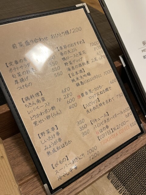 明月コースとおまかせ串3種、それとレバーパテ、スーパーおぎにり、酒4杯、コーヒー!