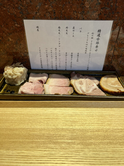特製トッピングのお肉達4種+焼売は写真の並び通り。