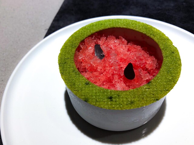 ・スイカのグラニテ 枇杷の種の葛 抹茶のサブレ